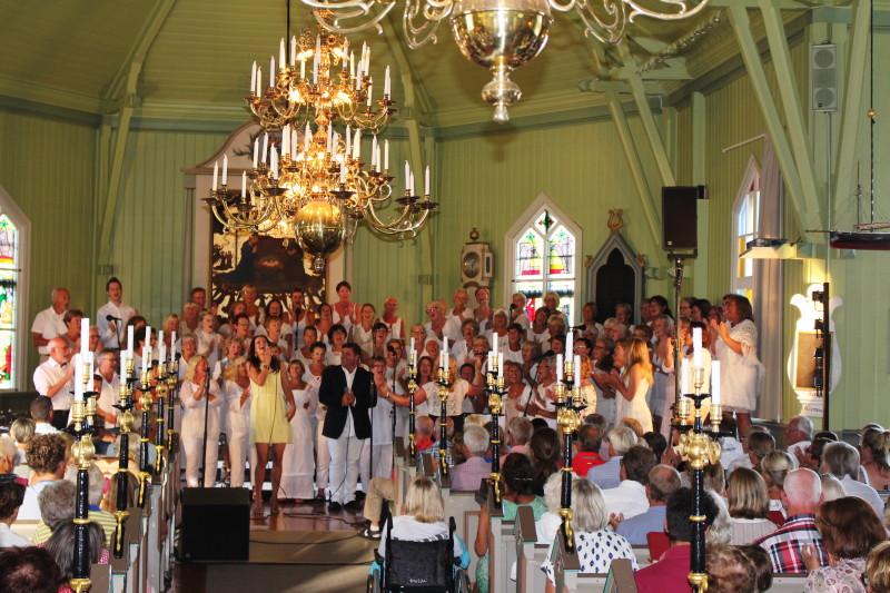 Today the summer/ gospel concerts are organized by the choir Salta Vindar. Nina Norrman lives in Oslo, and from there she says that the origin of these popular summer concerts was that she was contacted, when she was a cantor in the church, by Anki and Magnus Spångberg with an inquiery, if there was an interest in having a concert in the church with Cindy Peters and Örebro Gospel. Nina answered that of course there was interest in that. However, wouldn't it be possible to extend it to some gospel days where you invite singers of the choir and summer residents on Skaftö, who like to sing, to join in and sing together? So it was and that is why it is called the Summer Choir on these occasions.