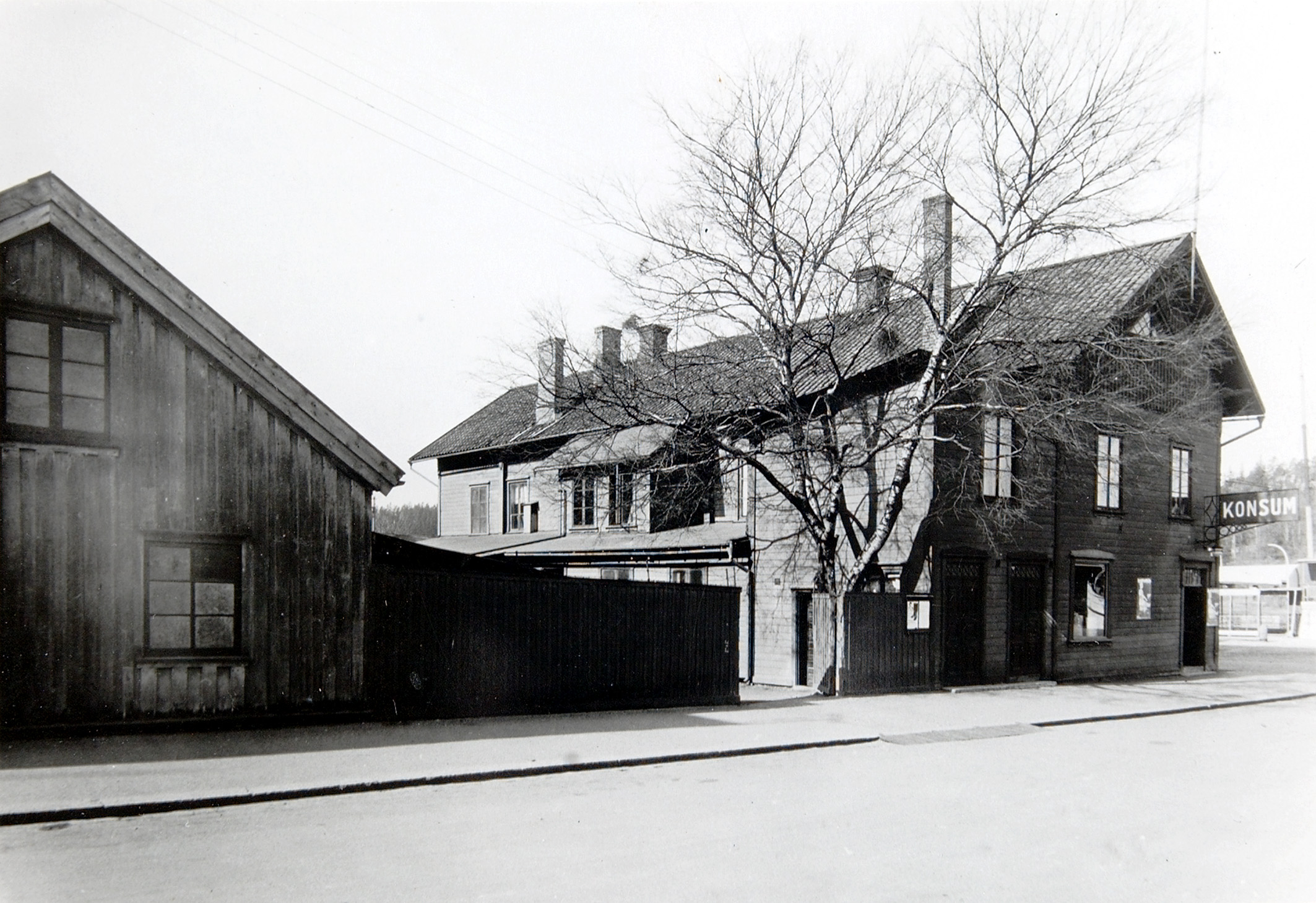 In 1867, the Trollhättan Workers' Association was founded, sprung from the emerging industrialism. In the same year, the association started selling basic food, which was the beginning of Sweden's oldest existing consumer association. In 1873-1875, the association erected this building, partly on an existing warehouse. The ground floor contained, among other things, a shop and a library. Upstairs, the assembly hall with stage is preserved. In the yard there were outbuildings and sheds.