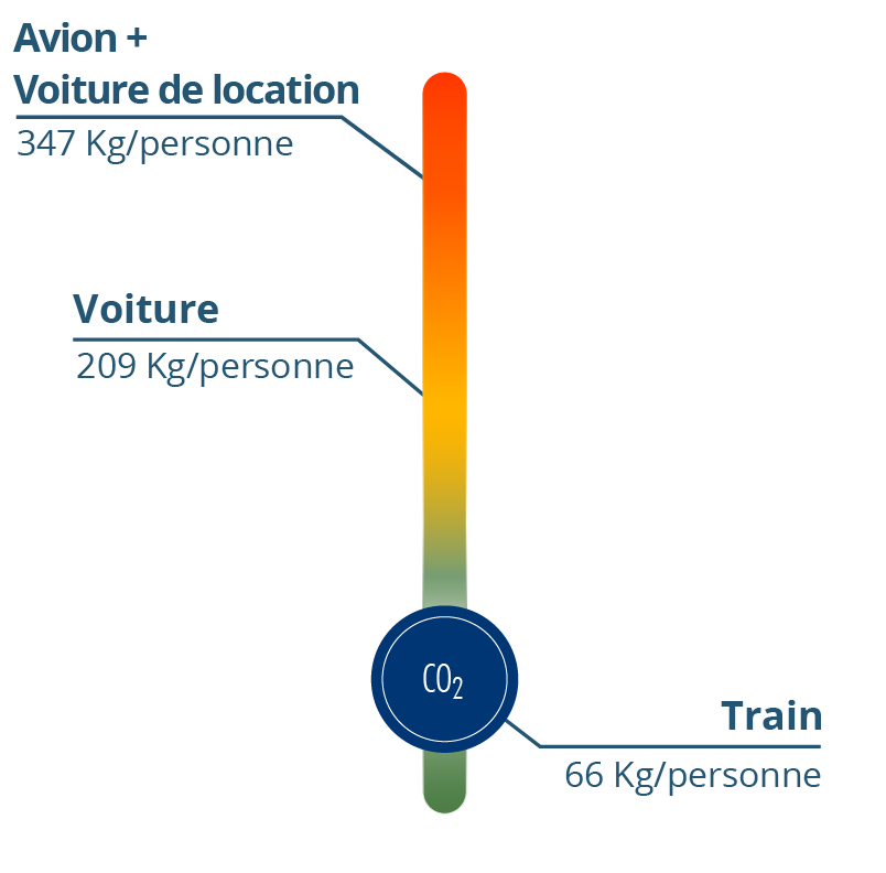Le calcul inclut le trajet aller-retour de Paris pour deux personnes et l'hébergement. Dans le diagramme, les résultats sont affichés par personne.