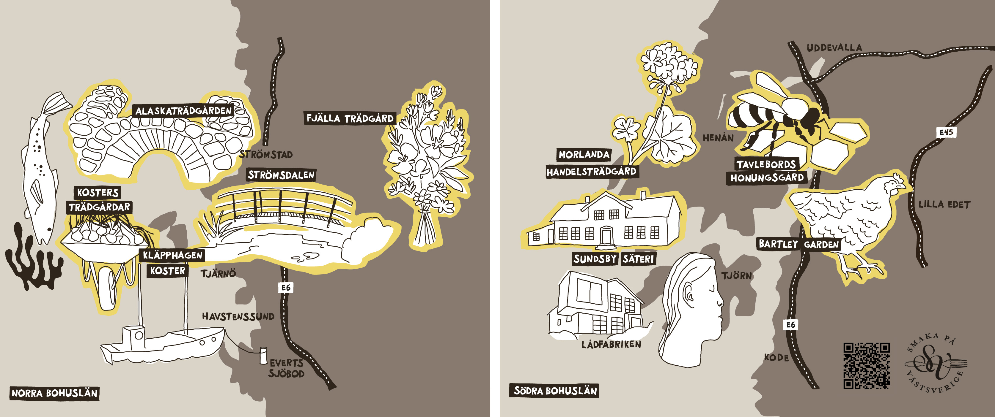 Här hittar du även tips på gårdsbutiker med lokalproducerade delikatesser, hantverksbryggerier och restauranger som ingår i nätverket "Smaka på Västsverige".